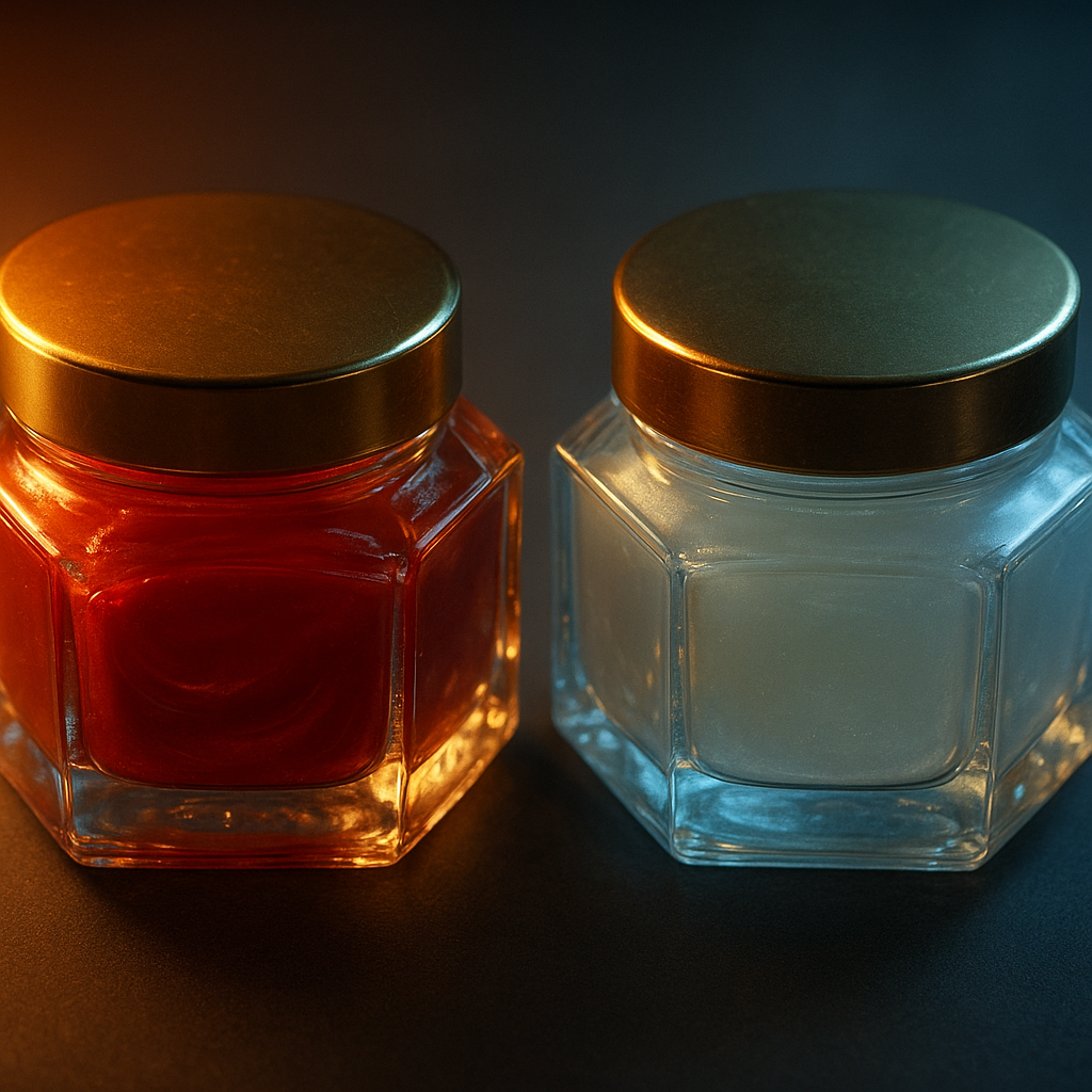 Mais alors, pourquoi deux couleurs ? C’est là que le bât blesse si on n’y prend pas garde. Tout se joue dans le dosage de ces huiles et l’ajout d’un ingrédient secret pour l’un d’eux. Voyons ça de plus près.